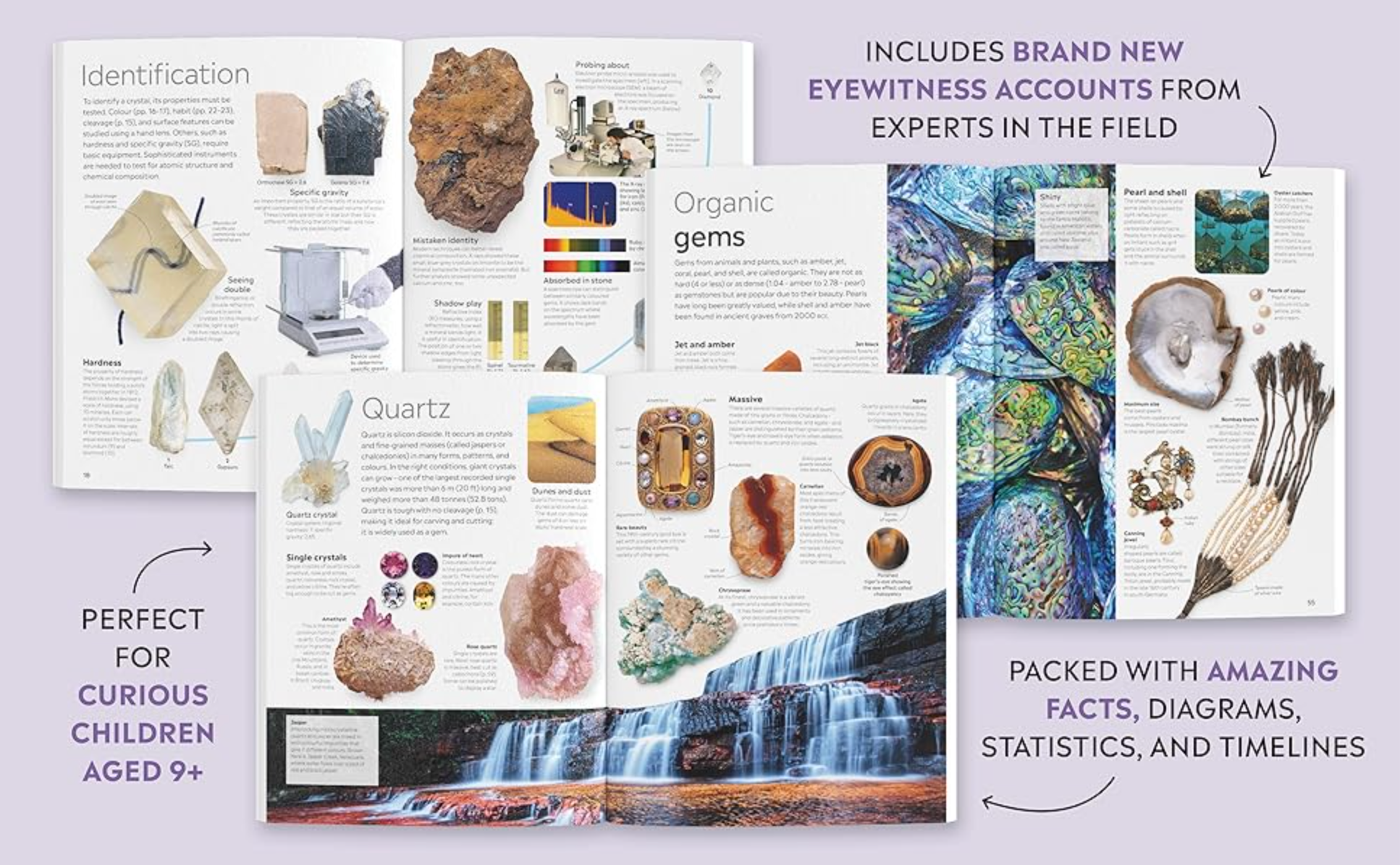 Become an eyewitness to the many different varieties of crystals and gems in this picture-led reference guide that will take you on a visual tour of the world of precious stones. Children will be mesmerized by the many uses of rocks like quartz and understanding crystals – from dazzling jewellery to diamond cutting tools and the silicon chip in their phone.