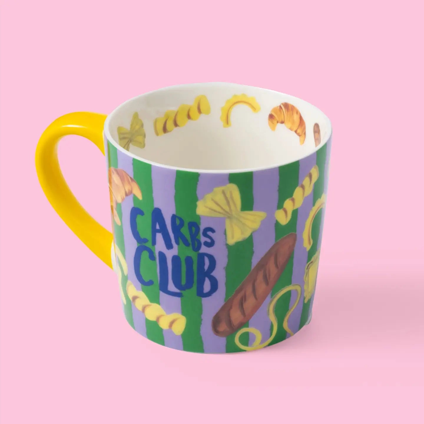 Welcome to the Carbs Club – where pasta, croissants and bread reign supreme. This green and purple striped bone china mug is the perfect kitchen companion. Want the full foodie fantasy?