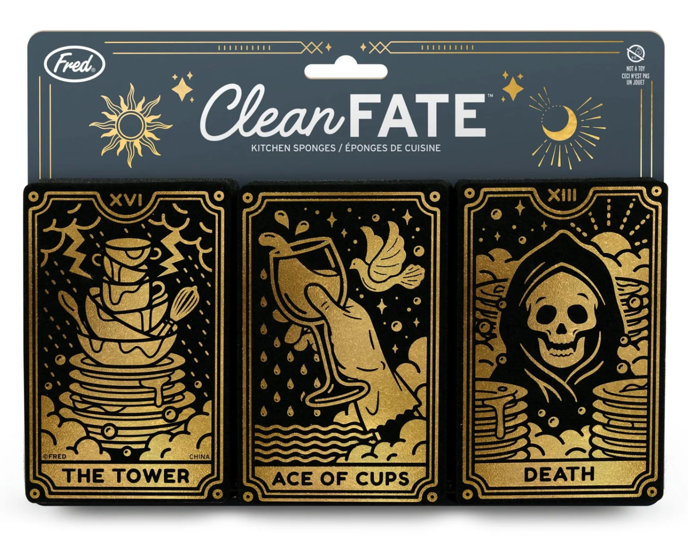 Fred’s Clean Fate isn’t just a sponge set—it’s a cleansing ritual. Each tarot-inspired sponge is adorned with shimmering gold illustrations and infused with cosmic cleaning energy. Measuring about 2.5" x 4", each one features three hardworking layers to clear the path to a cleaner future. Trust the cards, grab a sponge, and embrace your sparkling new beginning. Cleanliness is in the cards.