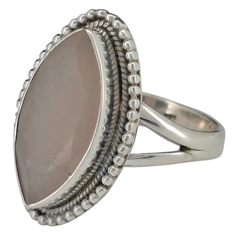 Faceted Malachite Sterling Silver Ring. Marquise-shaped gemstone set in .925 sterling silver. Gemstone ring.